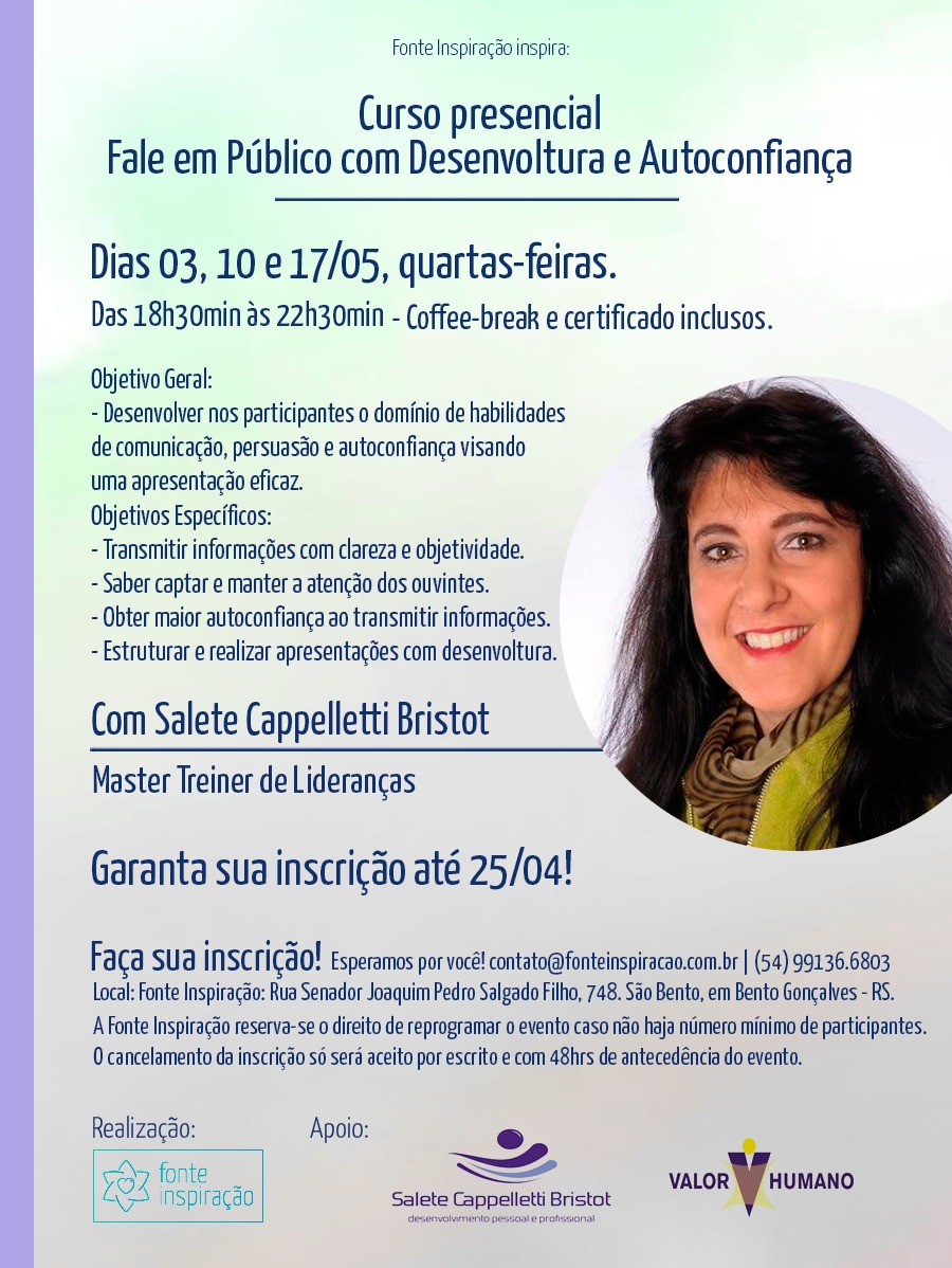 CURSO FALE EM PÚBLICO COM DESENVOLTURA E AUTOCONFIANÇA | 17/05/23