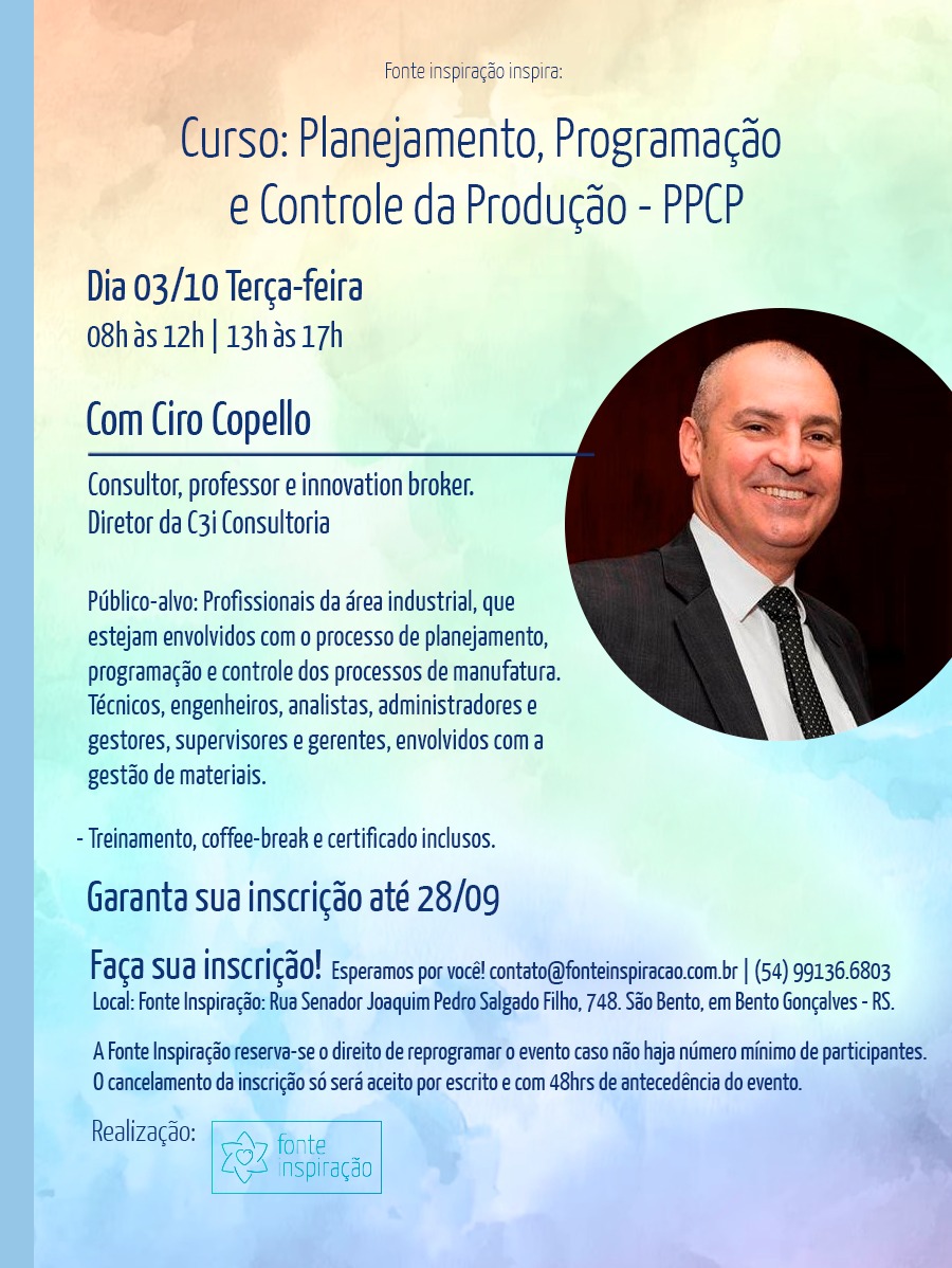 CURSO PLANEJAMENTO, PROGRAMAÇÃO E CONTROLE DA PRODUÇÃO - PPCP | 03/10/23