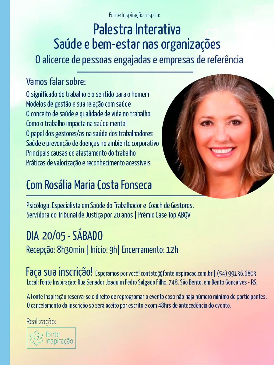 PALESTRA INTEGRATIVA SAÚDE E BEM-ESTAR NAS ORGANIZAÇÕES | 20/05/23