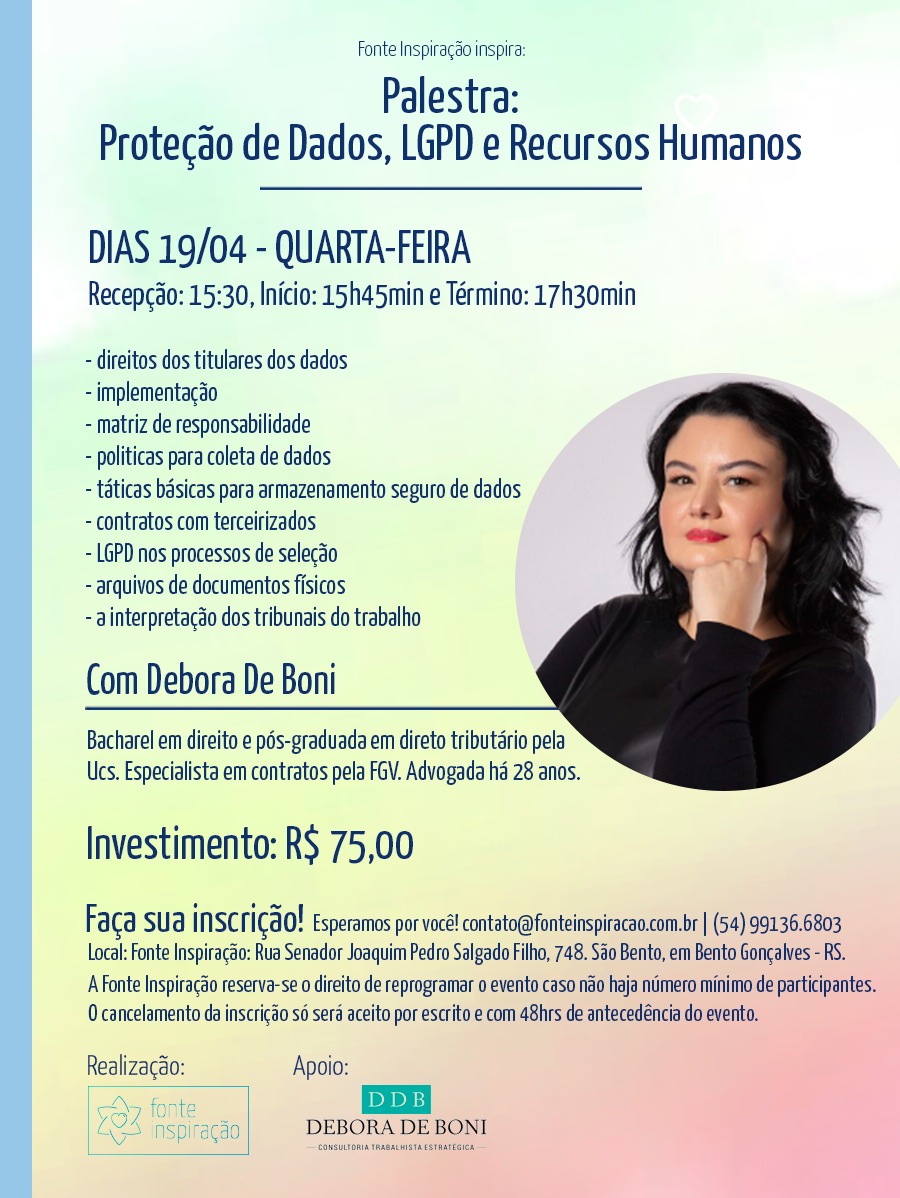 PALESTRA PROTEÇÃO DE DADOS, LGPD E RECURSOS HUMANOS | 19/04/23