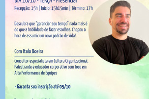 PALESTRA GESTÃO DO TEMPO: PRODUTIVIDADE E QUALIDADE DE VIDA | 10/10/23